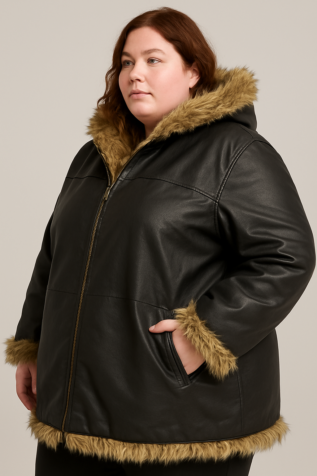 Genuine Leather Jacket with Faux Fur Trim – Zipper Closure, Premium Winter Warmth